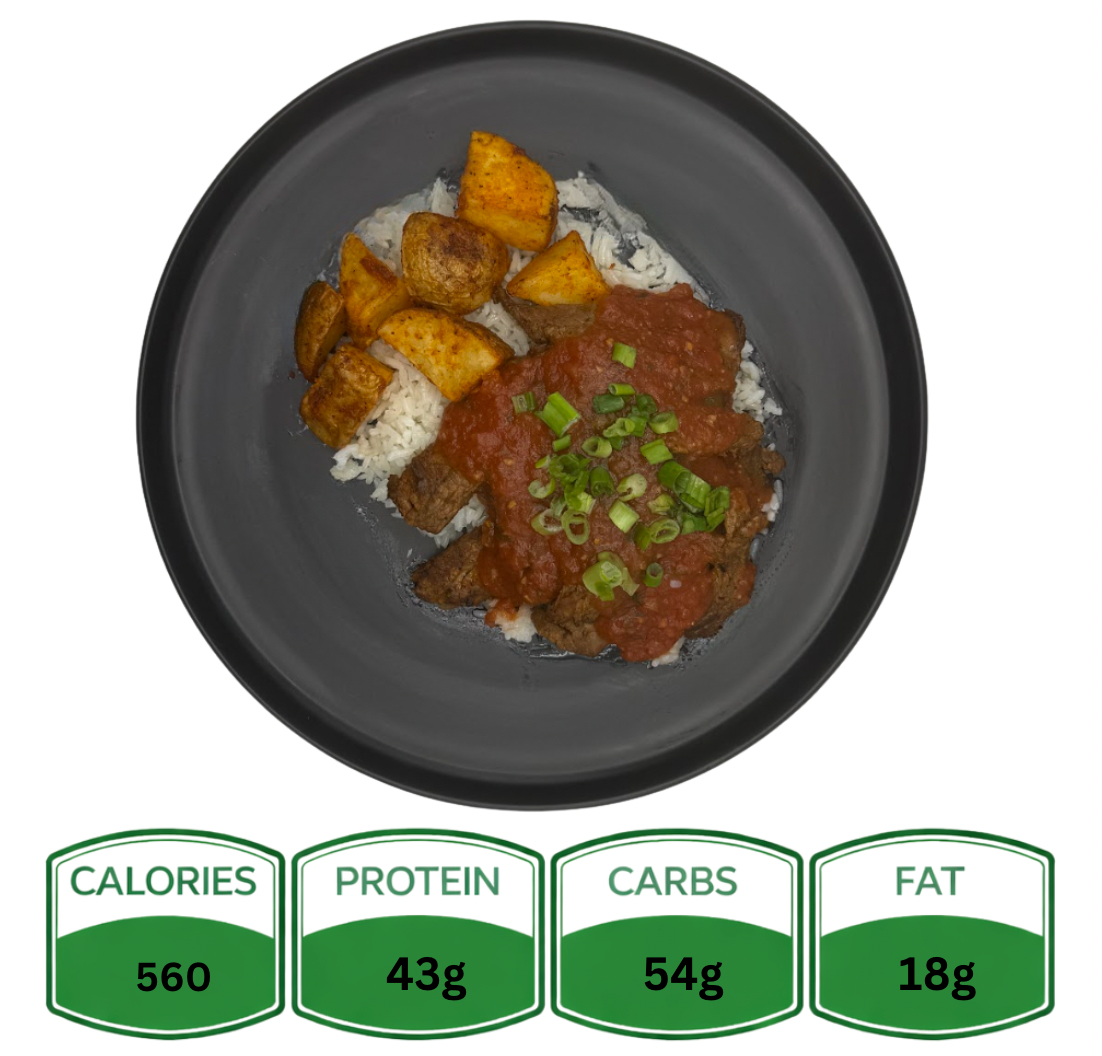 Our lighter take on the classic Peruvian favorite — tender marinated steak simmered in a rich lomo tomato sauce and served with crispy roasted potatoes. High-protein, chef-crafted, and made with clean ingredients for bold flavor without the heaviness.